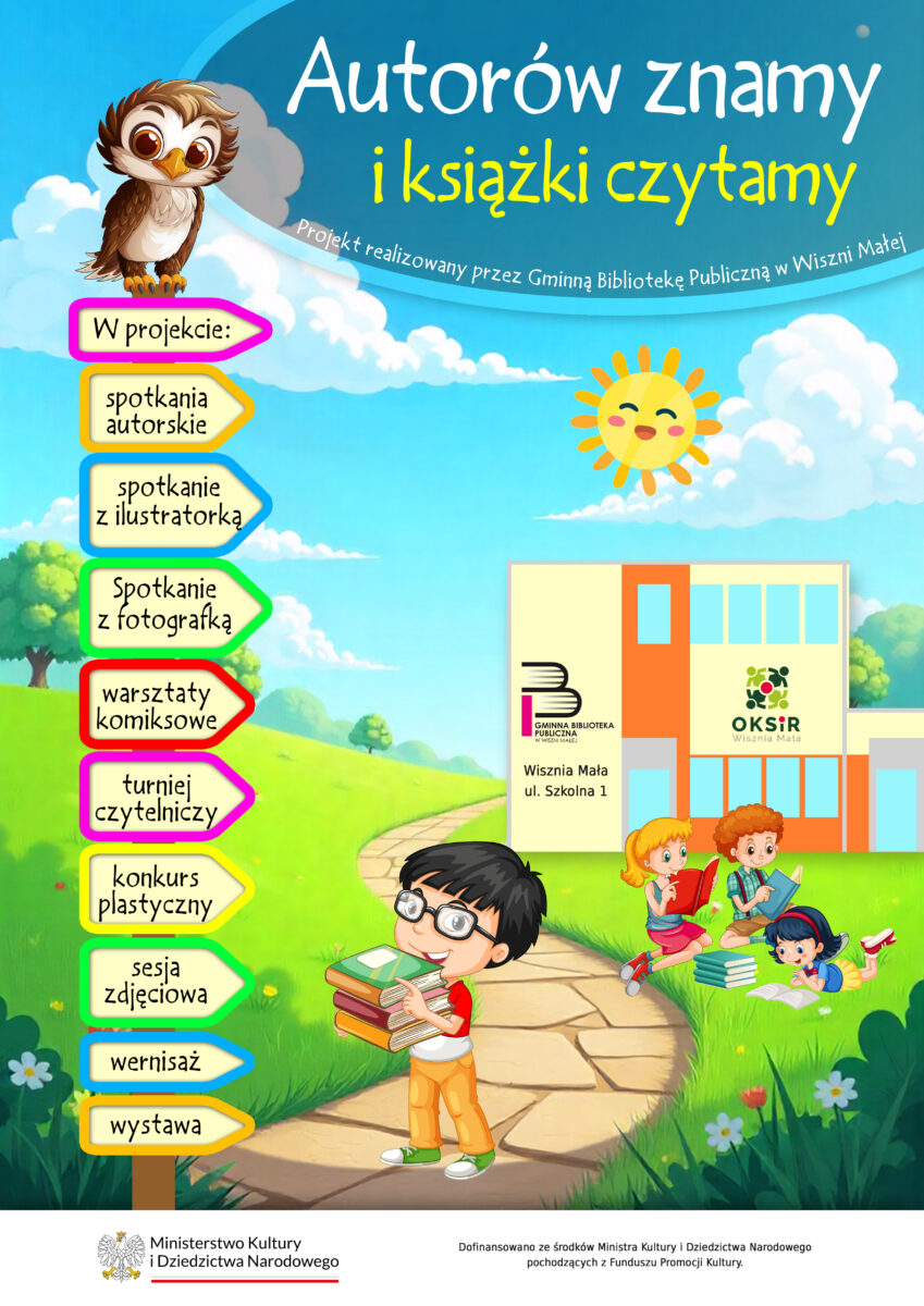 „Autorów znamy i książki czytamy” to projekt czytelniczy na który otrzymaliśmy dofinansowanie ze środków MKiDN pochodzących z Funduszu Promocji Kultury – państwowego funduszu celowego. Projekt skierowany jest do wszystkich grup wiekowych, ale głównymi odbiorcami zadania są dzieci i młodzież ze szkół podstawowych. Głównym celem projektu jest promocja czytelnictwa i lokalnej literatury, a także biblioteki, która jest miejscem spotkań.
