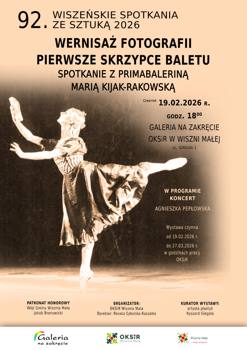 Zapraszamy na wernisaż fotografii Pierwsze Skrzypce Baletu – spotkanie z primabaleriną Marią Kijak-Rakowską oraz koncert Agnieszki Pepłowskiej