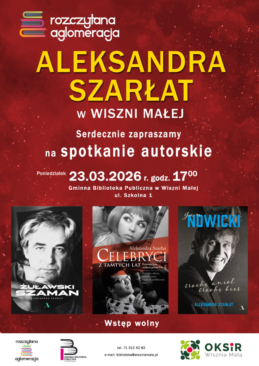 Serdecznie zapraszamy na wyjątkowe spotkanie z dziennikarką i autorką książek – Aleksandrą Szarłat. Swoje teksty publikowała w takich pismach , jak m.in. „Twój Styl”, „Elle”, „Gala”, „Przegląd”, „Polityka”, „Film”, „Pani”, „Rzeczpospolita”.
