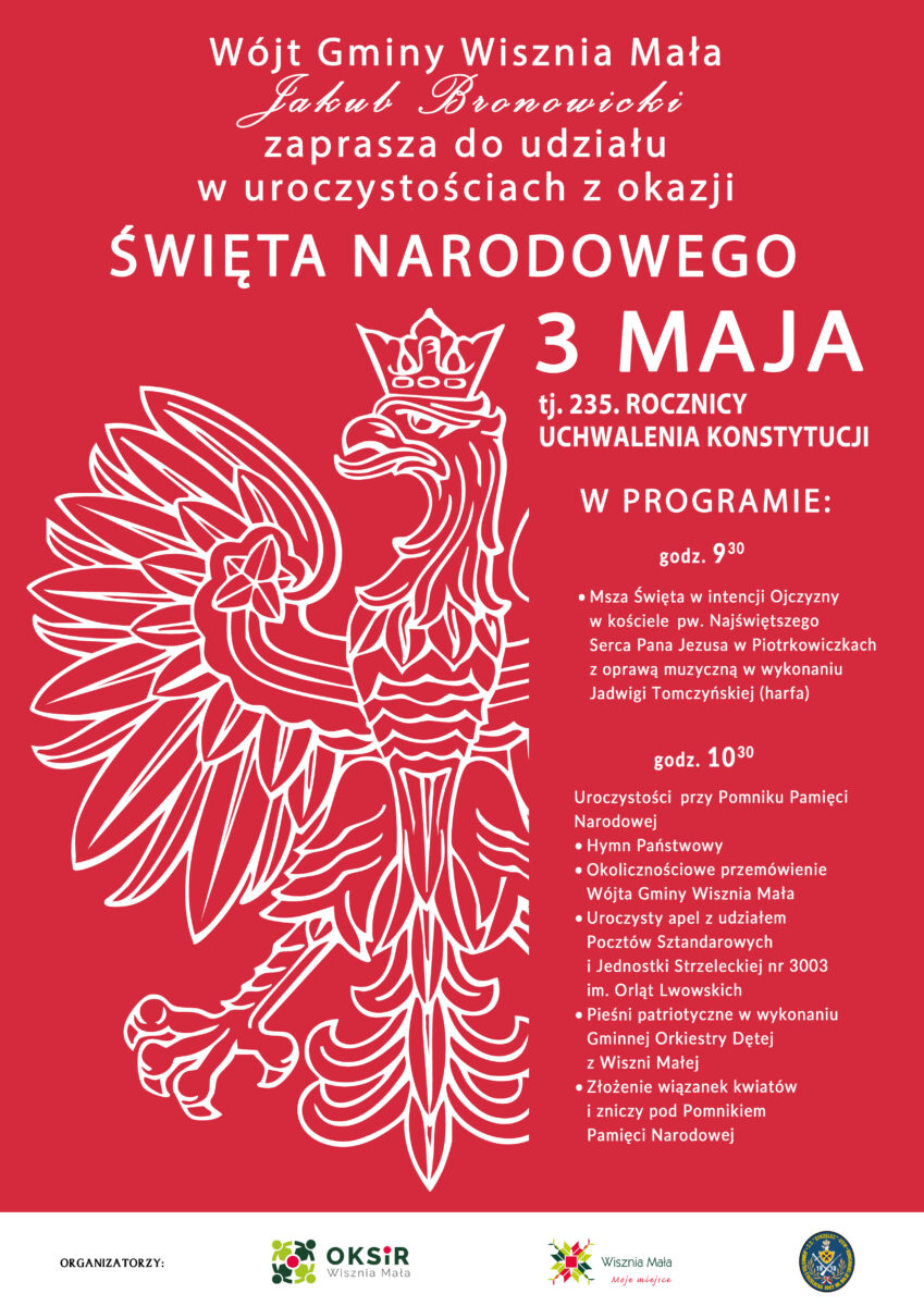Home Wydarzenia Uroczystości z okazji Świeta Narodowego 3 Maja tj. 235. Rocznicy Uchwalenia Konstytucji w Wydarzenia To wydarzenie już się zakończyło. Data 21 kwietnia 2026 Godzina 10:00 - 10:00 3 maja, Piotrkowiczki